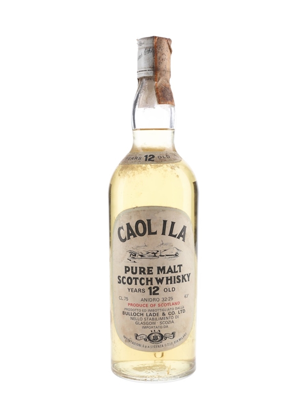 A bottle of Caol Ila 12 Year Old, bottled by then proprietors Bulloch Lade & Co. Ltd. This was imported to Italy by ILA, we estimate in 1968 to 1970.