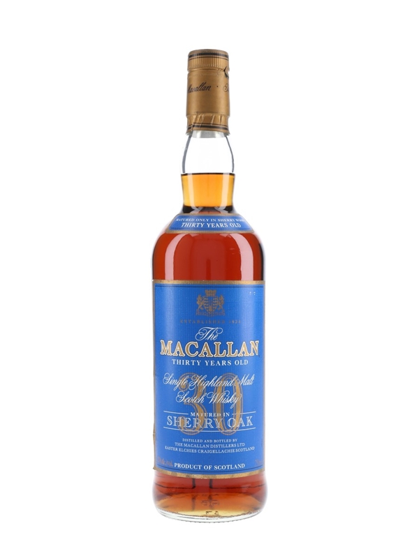 A bottle of The Macallan 30 Year Old Sherry Oak. This was bottled for the US market and imported by Remy Martin Inc.