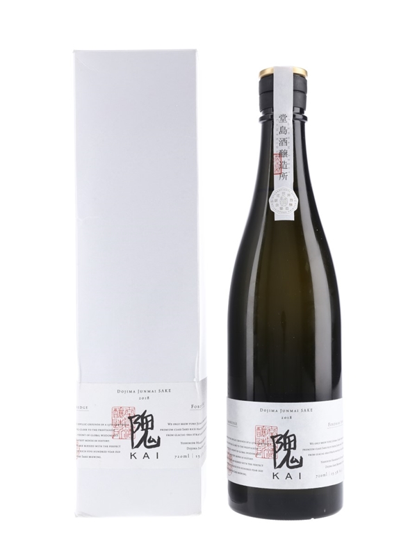 A bottle of Dojima Junmai Sake Kai, made from Japanese sake rice and pure English water. This was produced by Dojima Sake Brewery UK & Co., based at Fordham Abbey, Cambridge, and is the brewery's first release since opening in 2018.