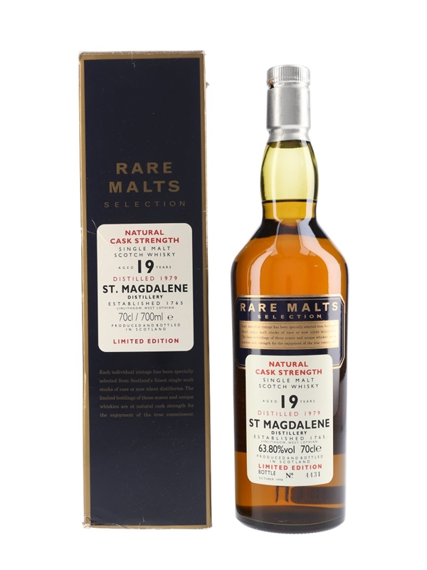 A bottle of St Magdalene 19 Year Old distilled in 1979. This was released in 1998 as part of Diageo's now discontinued Rare Malts range.