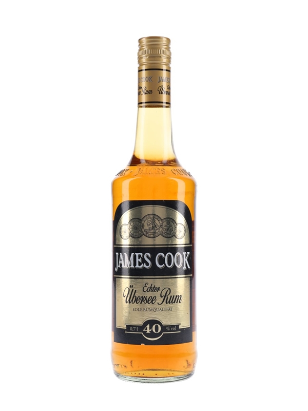 A bottle of James Cook Echter Übersee Rum (Real Overseas Rum), bottled by Pabst & Richarz Vertriebs, Germany.