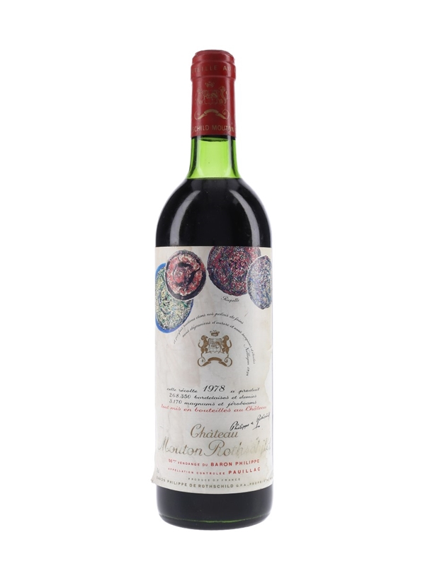 A bottle of 1978 Château Mouton Rothschild from Bordeaux's Pauillac appellation, featuring a label by Montreal-born artist Jean-Paul Riopelle (1923-2002).