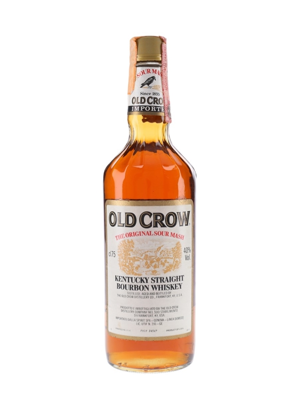 A bottle of Old Crow Kentucky straight bourbon whiskey, distilled and bottled by W A Gaines. This was bottled for the Italian market and imported by Spirit, we estimate in the 1980s.