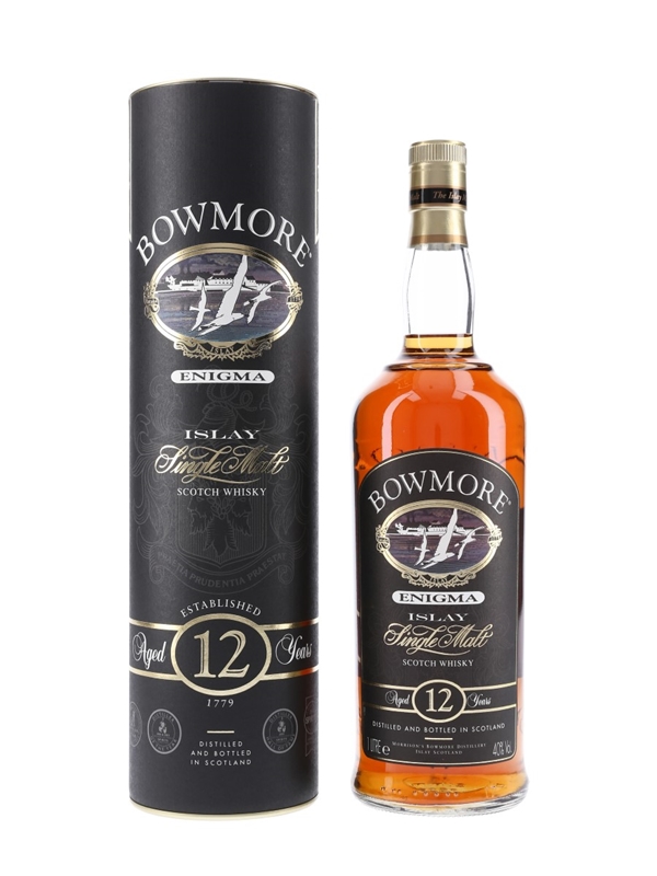 A litre bottle of Bowmore 12 Year Old Enigma, made using a greater proportion of fresh sherry casks than the standard 12 year old bottling.
