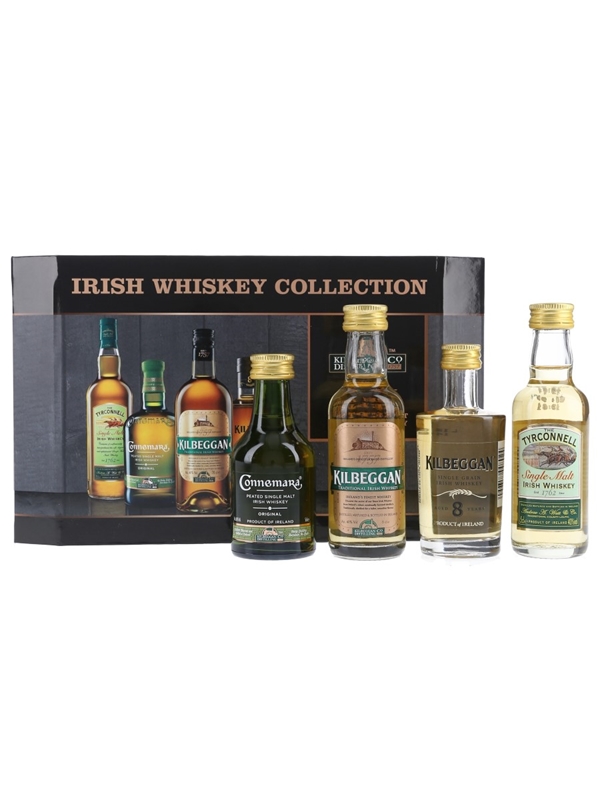 The Kilbeggan Irish Whiskey Collection set contains four miniature bottles: