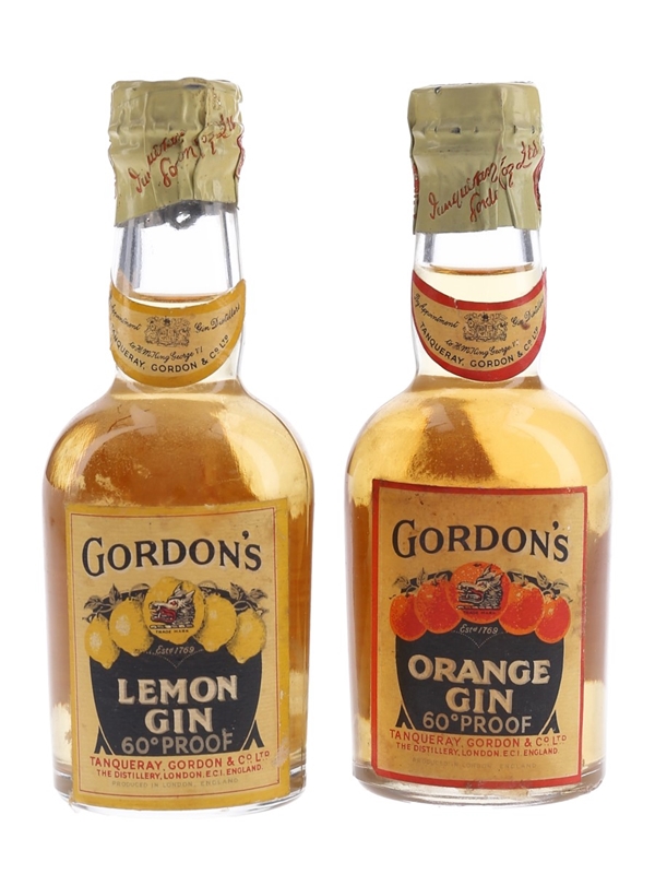 Gordon's Lemon & Orange Gin Spring Cap Bottled 1940s-1950s 2 x 5cl / 34.2%