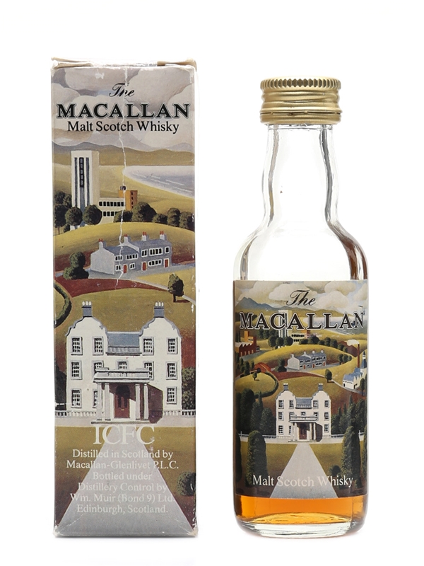 A special miniature bottle of The Macallan, bottled for ICFC by Wm. Muir Ltd. The box and label carry images of Prestonfield House.