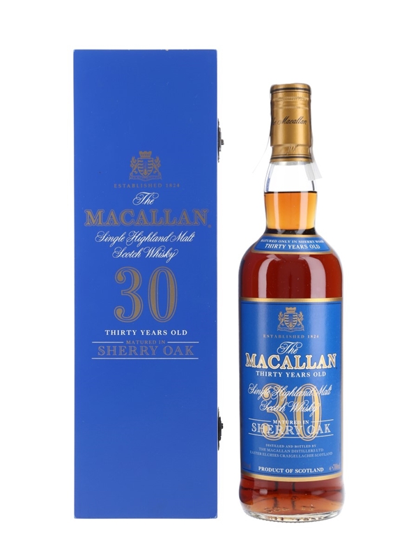 A bottle of The Macallan 30 Year Old Sherry Oak.