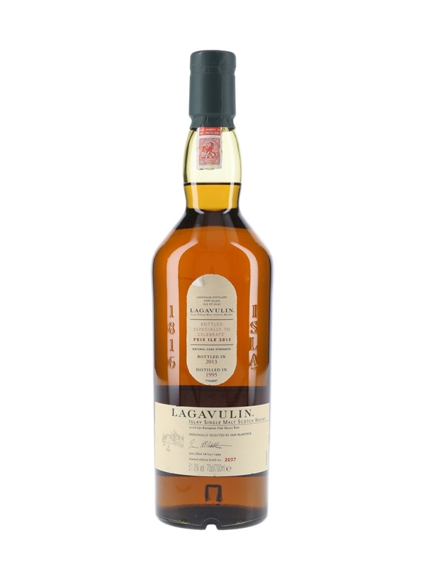 A limited edition bottle of Lagavulin 1995. This was distilled on 8 May 1995, matured in European oak sherry butts, and bottled for Feis Ile 2013.