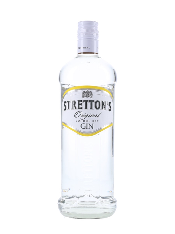 A bottle of Stretton's Original London Dry Gin, produced and bottled in South Africa.