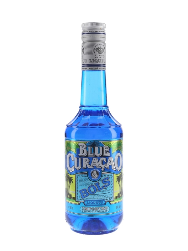 A 50cl bottle of Bols Blue Curaçao liqueur from the Netherlands. We estimate this was bottled in the 1980s.