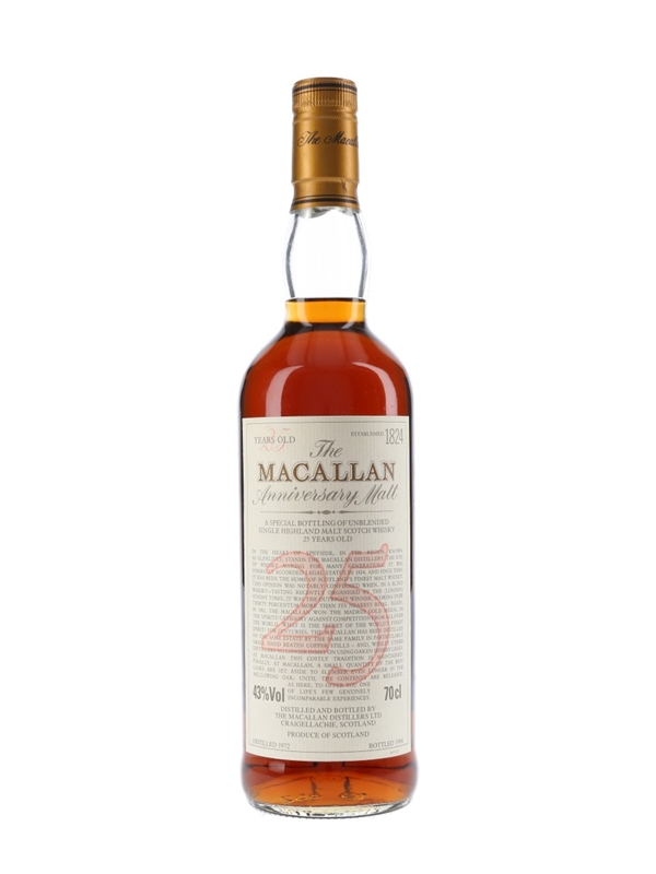 Macallan 1972 25 Year Old Anniversary Malt Bottled 1998 70cl / 43%