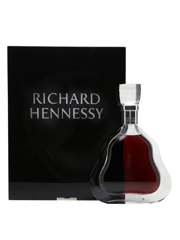 A bottle of Richard Hennessy Cognac, blended from their finest eaux-de-vie and named after the founder of the house. This was bottled on 19 December 2011 and is presented in a Baccarat crystal decanter with stopper, housed in a black lacquer box. This comes with a pair of large pipettes and a stand for serving the Cognac.
