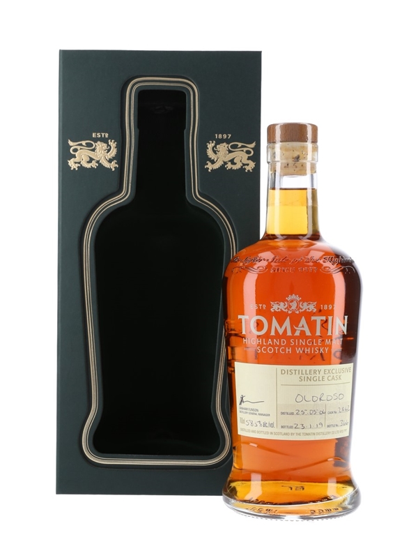 A limited edition bottle of Tomatin 2006 Distillery Exclusive. This was distilled on 25 May 2006, matured in a single cask and bottled at cask strength on 23 January 2019.