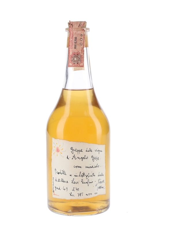 A bottle of Romano Levi 1996 Grappa Delle Vigne di Angelo Gaja.