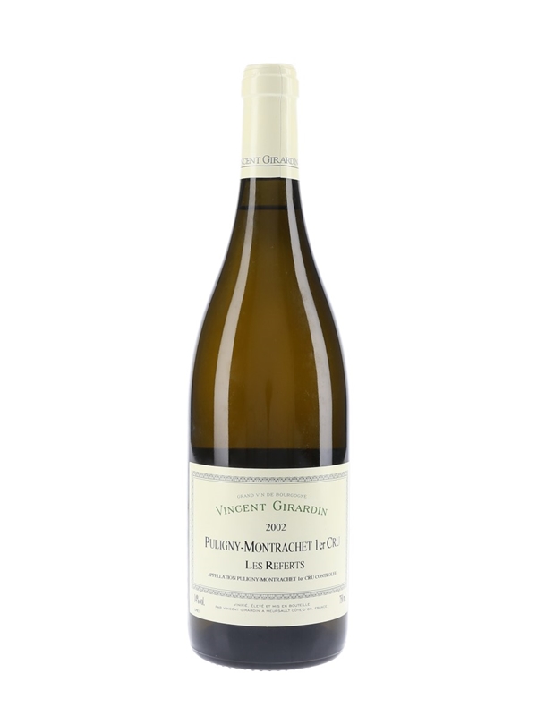 A bottle of 2002 Puligny Montrachet Premier Cru Les Referts bottled by Vincent Girardin.