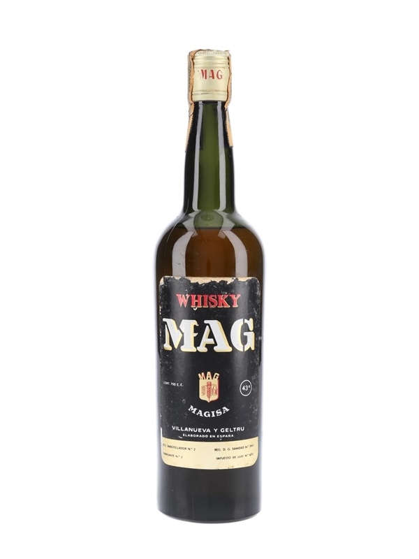 A bottle of Whisky Mag, produced by Magisa, Spain. We estimate this was bottled in the 1970s.