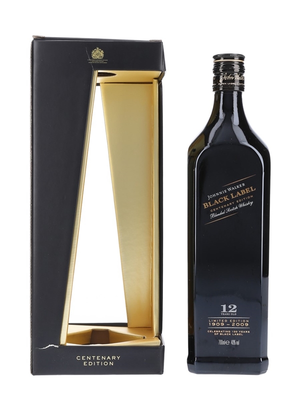 A special edition bottle of Johnnie Walker Black Label 12 Year Old. This bottling was released in 2009 to commemorate 100 years of Black Label, first created in 1909.