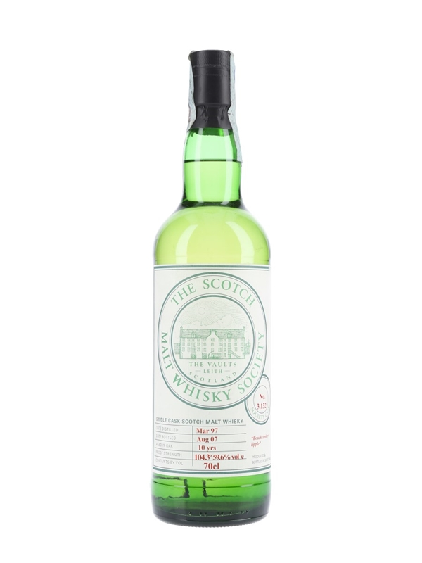 A 1997 vintage whisky from the Scotch Malt Whisky Society. This whisky was distilled at Bowmore distillery in March 1997, matured for 10 years, and bottled in August 2007. This was imported to the Italian market by The Scotch Malt Whisky Society Italy.