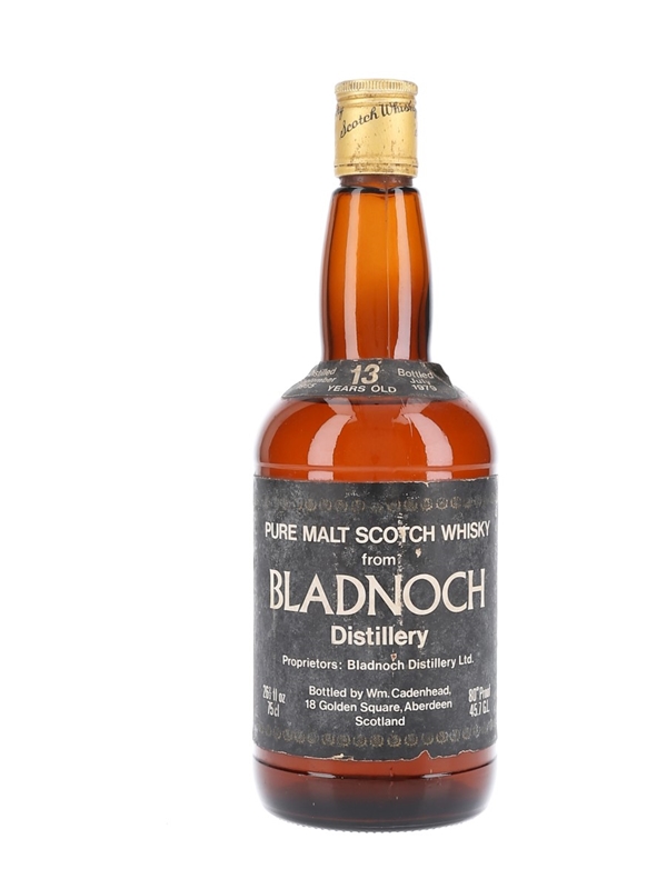 A bottle of Bladnoch 13 Year Old Pure Malt Scotch Whisky. This was distilled in September 1965 and bottled at 45.7% ABV by Cadenhead's in July 1979.
