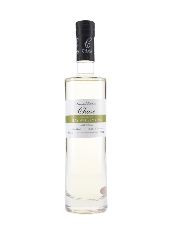 A limited edition bottle of Chase Extra Peated Islay Whisky Cask Vodka, produced in Herefordshire, England. This was lightly matured in a cask from Ardbeg distillery, imparting a peated character to the vodka.