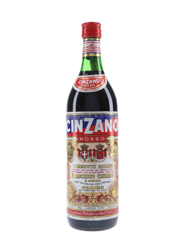 A litre bottle of Cinzano Rosso vermouth. We estimate this was bottled in the 1970s.