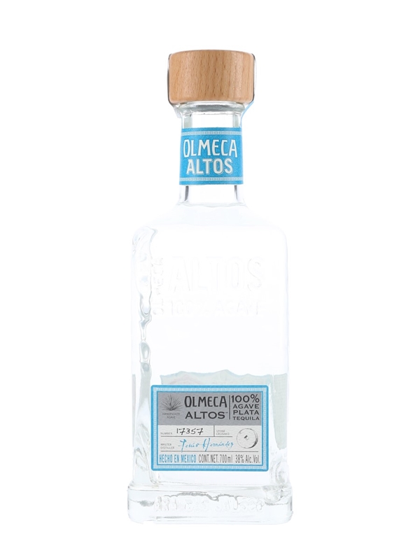 A bottle of Olmeca Altos Agave Plata Tequila, produced in Mexico.
