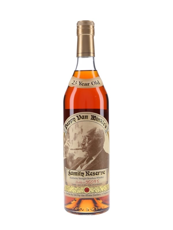 A bottle of Pappy Van Winkle's 23 Year Old Family Reserve. This is released annually in batches. It was imported to the UK by Hi-Spirits Ltd.