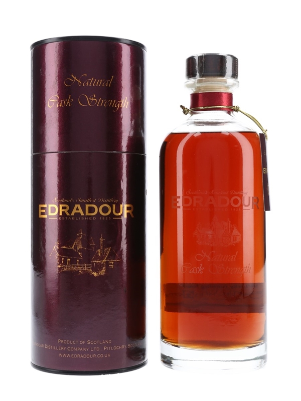 A bottle of Edradour 1989 Single Highland Malt Scotch Whisky. This was distilled on 3 October 1989, matured in a single cask and bottled on 23 October 2003 at natural cask strength of 59.9% ABV.