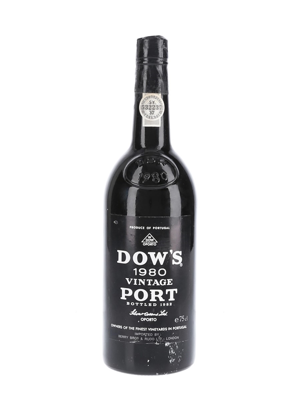 A bottle of Dow's 1980 Vintage Port, bottled in 1982 and imported to the UK by Berry Bros & Rudd Ltd.