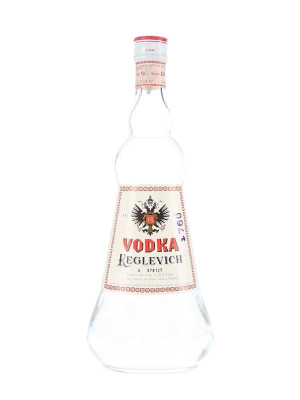 A bottle of Keglevich Vodka, made in Italy by Stock. We estimate this was bottled in the 1960s.