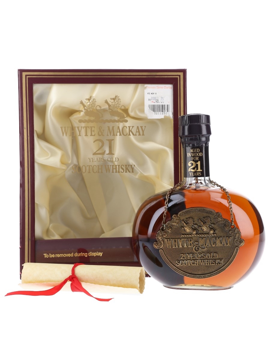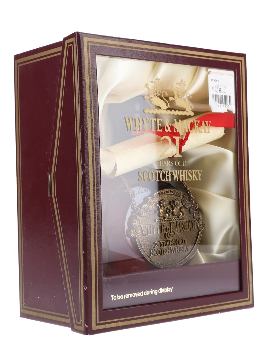 A bottle of Whyte & Mackay 21 Year Old with a gold medallion. We estimate this was bottled in the 1980s.