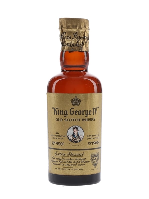 Named after the monarch who introduced the first licences to legally distil in Scotland, the King George IV brand was registered in the 1880s by Distillers Agency Ltd., an export branch of the Distillers Company Ltd.
