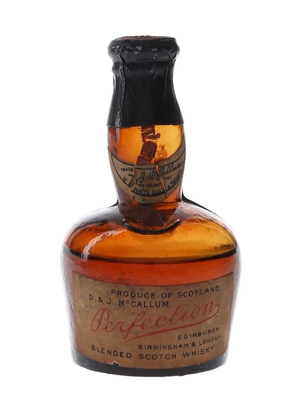 A miniature bottle of McCallum's Perfection Scots Whisky, sealed with a cork stopper and bottled by D & J McCallum. We estimate this was bottled in the 1920s to 1930s.