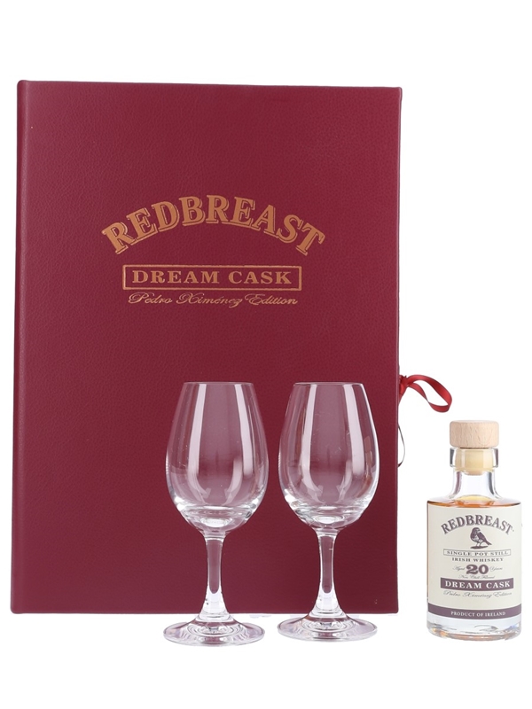 A 10cl bottle of Redbreast 20 Year Old Dream Cask Single Pot Still Irish Whiskey. This whisky was matured in a combination of 2nd fill bourbon barrels, oloroso sherry and Pedro Ximénez sherry casks before vatting and recasking in specially selected Pedro Ximénez sherry butt.