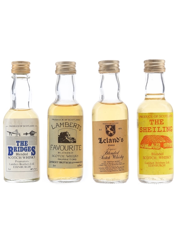 This lot contains four miniature bottles of blended Scotch whisky, produced by Lambert Brothers. We estimate these were bottled in the 1980s: