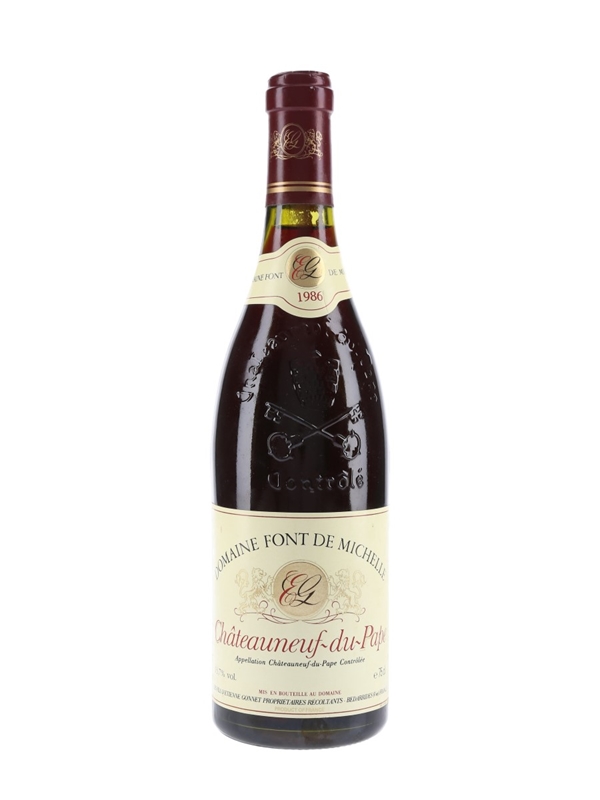 A bottle of 1986 Domaine Font de Michelle Châteauneuf du Pape from producers Les Fils d'Etienne Gonnet, from the Southern Rhône's most celebrated appellation.