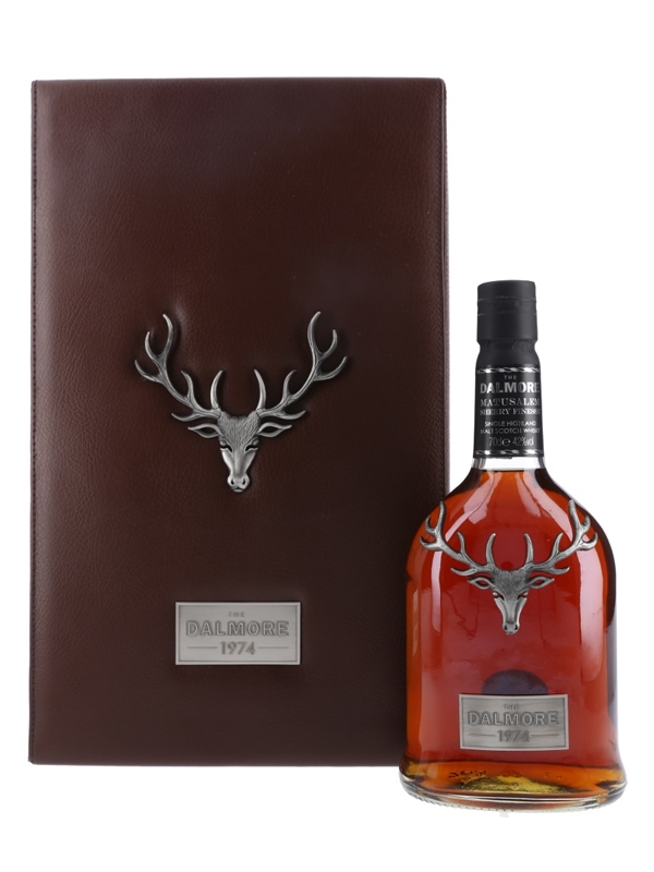A bottle of Dalmore 1974 Single Highland Malt Scotch Whisky. This was distilled on 15 April 1974, matured in a single Matusalem Sherry butt from Jerez De La Frontera and bottled at 42% ABV.