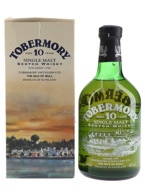 An old presentation bottling of Tobermory 10 Year Old Single Malt Scotch Whisky, the unpeated single malt from the Isle of Mull.