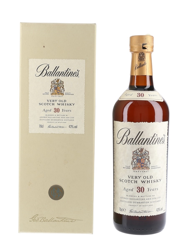 A bottle of Ballantine's 30 Year Old Very Old Scotch Whisky, the oldest expression in the Ballantine's range.