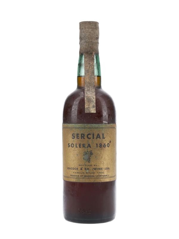 A bottle of Leacock & Co. Solera 1860 Madeira wine, made from the Sercial grape variety. This was distributed by J A Da Costa Pina, Lda.