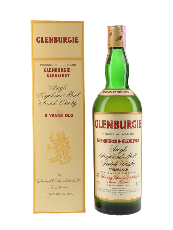 A bottle of Glenburgie-Glenlivet 5 Year Old Single Highland Malt Scotch Whisky. This was bottled for Italian importer Soffiantino, we estimate in the late 1960s to early 1970s.