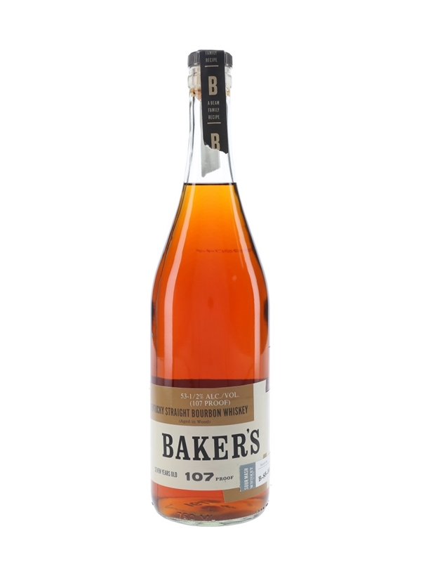 A bottle of Baker's Kentucky Bourbon, aged for 7 years and bottled straight from the cask at 53.5% ABV.