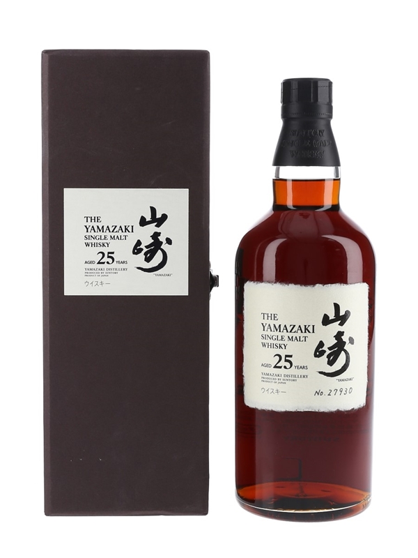 A bottle of The Yamazaki 25 Year Old Single Malt Whisky, matured in sherry casks.