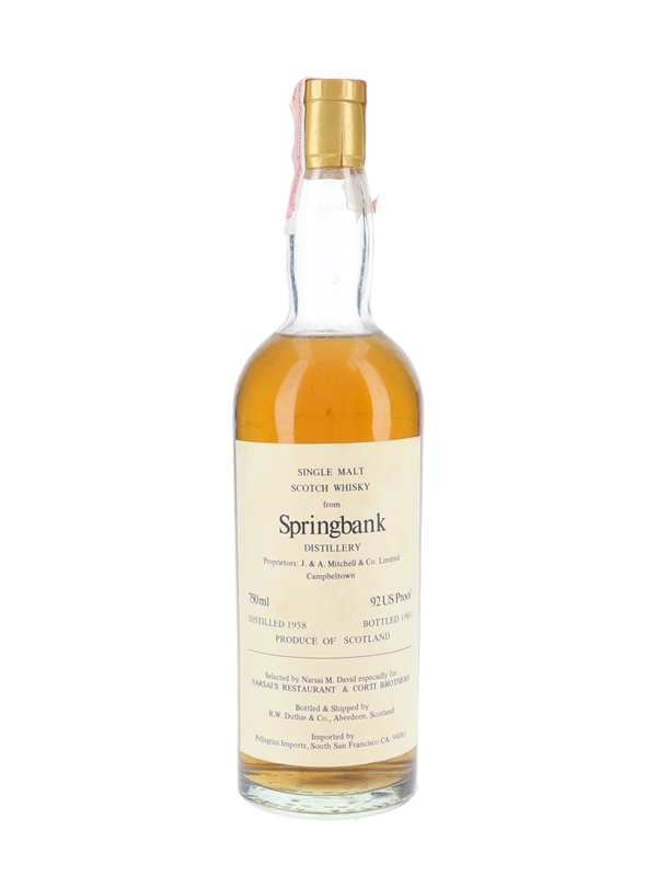 Springbank 1958 Bottled 1983 - Narsai's Restaurant & Corti Brothers - Signed Bottle 75cl / 46%