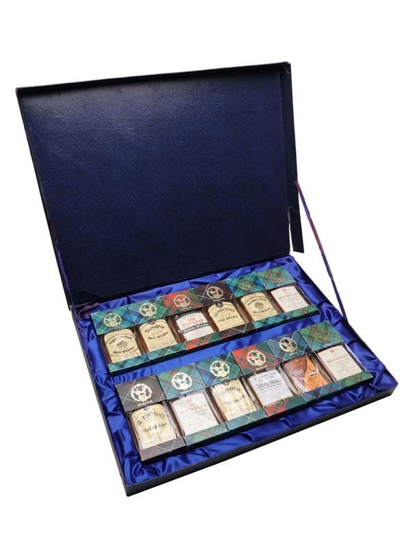 A set of 12 miniature bottles of Single Malt Scotch Whisky, bottled by Gordon & MacPhail and presented in a Fortnum & Mason gift box. We estimate these were bottled in the 1970s: