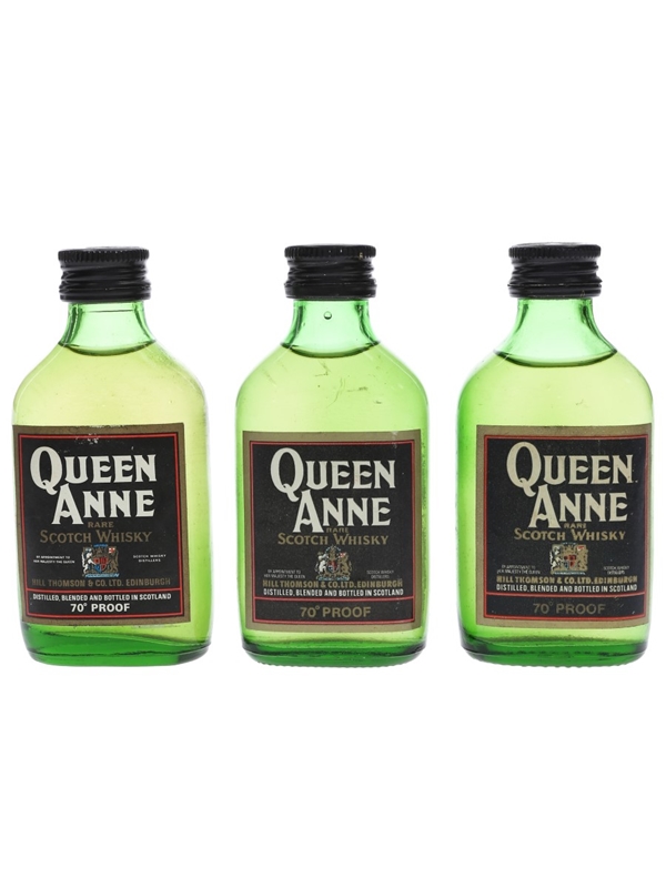 This lot contains three miniature bottles of Queen Anne Rare Scotch Whisky. We estimate these were bottled in the 1970s.