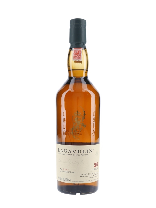 A limited edition bottle of Lagavulin 30 Year Old Single Islay Malt Scotch Whisky. This was distilled in 1976 and bottled at natural cask strength in 2006 for Diageo's Special Releases.