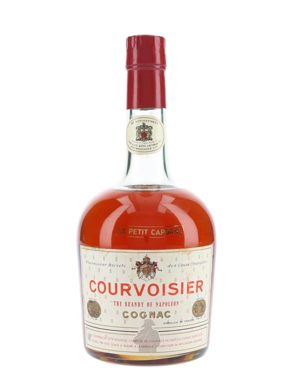 A bottle of Courvoisier Le Petit Caporal Cognac. We estimate this was bottled in the 1960s.