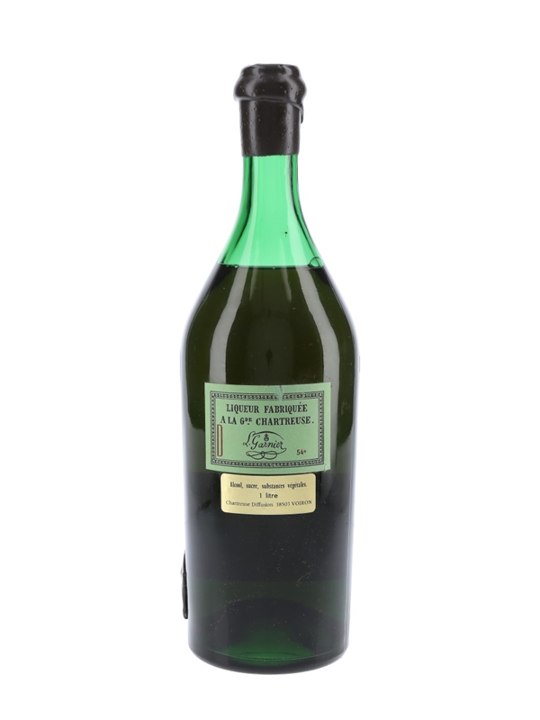 A litre bottle of Chartreuse VEP Green liqueur from France. This was matured in oak casks and bottled in 1974.